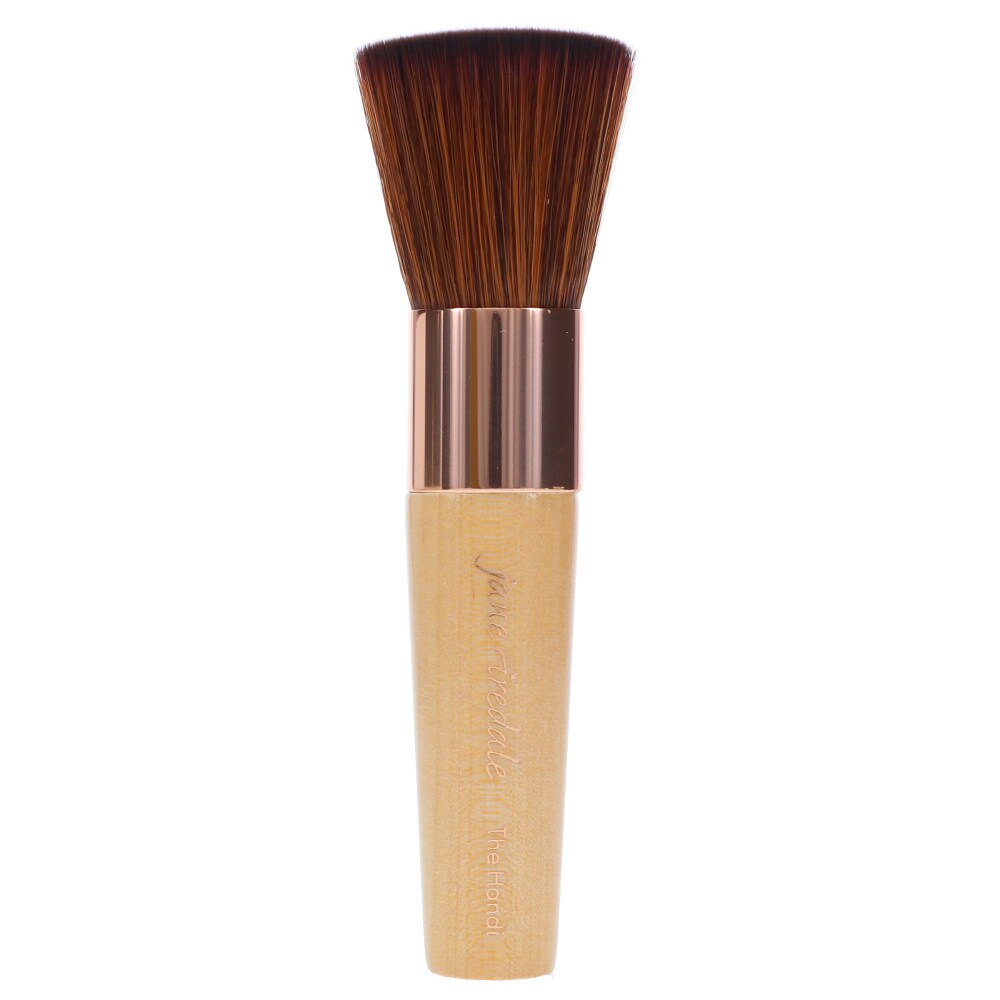 Le pinceau rond à extrémité plate applique uniformément les poudre. Mache court.